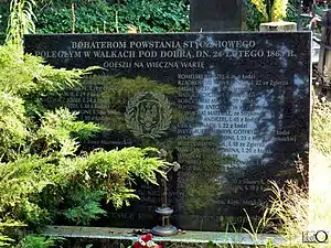 Monument with the names of the insurgents killed in battle on their mass grave in Dobra
