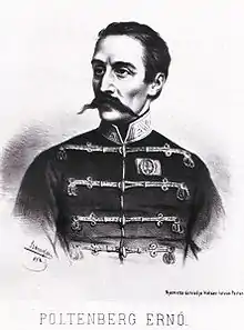 At that moment the danger appeared in a so huge shape, and the subofficers which were present there, were so insufficient, that I decided to spare no effort in order to make possible and assure the simple, unperturbed retreat of the exhausted infantry by personally leading the attack of all the cavalry which was available [in that moment], forcing them to fight with all the force which they had... And then I opened my snuff box, broke down my wife's daguerreotype framed under the glass, and wiped it down from the sheet. The gentlemen which were commanding my divisions walked cozily to Gönyű and to Szentjános and saw that the imperial did not even bother, and forgot to think that with only three regiments of hussars I resist for hours to an imperial numbering 66,000 [soldiers], which were drunk of glory, and wishing to achieve a new victory, at Szabadhegy. If then, by chance, I would have been wiped out by a bullet or killed by a sword, [people] would have said: It is a pity that he put himself in front of danger without any reason. A military commander who selfishly pursues ambitious goals, would not put himself in front of such dangerous, but obscure rearguard fights, in which the achievable public glory is determined by the lesser involvement in them.[5]