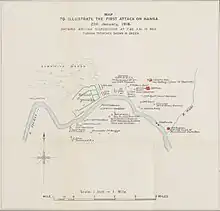 ![]() A 1924 British map showing the first attack on Hanna. | |||||||