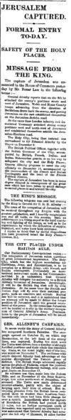 - ↑ Letter of General Allenby written 11 December 1917 in Hughes 2004, p. 105