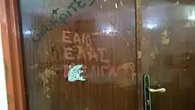 In the early 1980s, the Meligalas events became a point of reference in confrontations between university students close to the "Rigas Feraios" communist youth movement and the Leftist Clusters on the one side and the right-wing ONNED youth organization and its student wing, DAP-NDFK. After the PASOK government officially recognized EAM's contribution in the Greek Resistance in 1982, "Rigas Feraios" members coined the slogan "EAM-ELAS-Meligalas" ("ΕΑΜ-ΕΛΑΣ-Μελιγαλάς") as a counter to the positive portrayal of the Battalionists by the right-wing groups.[114] The slogan remained current in the university students' conference of 1992, following Civil War-era and anti-communist slogans used by DAP.[118] In the late 2000s, when the political slogans and rhetoric of the 1940s increasingly resurfaced in Greek political discourse,[119] and with Golden Dawn's entry into the Greek Parliament in 2012, the Meligalas events were re-evaluated in a positive light by anarchists as an example of militant anti-fascist action. Reference to them is now commonly combined with typically anti-authoritarian slogans.[118]