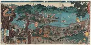 The Battle of Minatogawa was a major defeat for the Imperial loyalists but became famous in Japanese mythology for the loyalty displayed by Kusunoki to the Emperor in the face of certain death and defeat.[2]