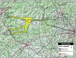 The main Confederate assault was at dawn and against a poorly guarded and sleeping Union camp. In command of the Confederate forces were Lt. Gen. Wade Hampton and Maj. Gen. Joseph Wheeler, who were operating together for the first time. One of the goals (not fulfilled) was the capture of Kilpatrick himself, using a small elite squadron of hand-picked troopers. Kilpatrick, ensconced with his mistress in a small log cabin near the farmhouse of Charles Monroe, managed to flee the chaotic scene in his nightshirt, hiding for a period in a nearby swamp before regaining his composure and reorganizing his troops. While initially routed, the Federal cavalry soon recovered and counterattacked, eventually pressuring the Confederates to withdraw from the camp. Anticipating the approach of Union infantry, the Confederate commanders ordered their troops to disengage from the action in the mid-morning. Hampton's cavalry finally withdrew in good order toward Fayetteville. Confederate Brig. Gen. Thomas Harrison,[3] Brig. Gen. William Y.C. Humes, Col. and brigade commander James Hagan and Col. and brigade commander Moses W. Hannon were wounded during the battle.[4] Brig. Gen. William W. Allen and Colonel and brigade commander Henry Marshall Ashby were injured when their horses were shot from under them.[4]