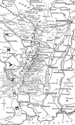 The Landwehr fought a delaying action as the French advanced from Belfort with two divisions on the right passing through Dannemarie at the head of the valley of the Ill river. On the left flank, two divisions advanced with Chasseur battalions, which had moved into the Fecht valley on 12 August. On the evening of 14 August, Thann was captured. The most advanced troops had passed beyond the suburbs of Cernay and Dannemarie on the western outskirts of the city by 16 August. On 18 August, VII Corps attacked Mulhouse and captured Altkirch on the south-eastern flank as the northern flank advanced towards Colmar and Neuf-Brisach.[19]