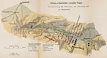 On September 30, during the intensified reconnaissance of the French, Rehbinder's advance guard was not quickly supported by Rosenberg; it was said that the reason for this was Rosenberg's personal dislike of Rehbinder.[3] - ↑ Losses are down to 500 if counting only the 1st of October.[2]