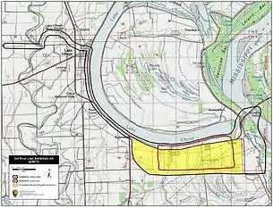 Map of Old River Lake Battlefield core and study areas by the American Battlefield Protection Program.