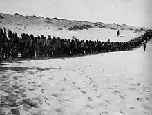 During the fighting the Desert Column suffered three times the losses endured at Magdhaba.[43] The 487 casualties included 124 New Zealanders: 71 killed, 415 wounded and one missing.[44][45][46] Against this, the mainly Ottoman prisoners, which included some German machine-gunners, totalled between 1,472 and 1,635, with 162 of them wounded.[41][47][48] About 200 Ottoman soldiers were killed on the battlefield.[44][49]