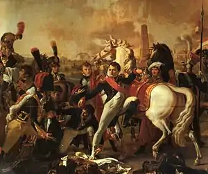 Walking to observe the gap, Napoleon was struck by a small canister round in the left foot but was able to mount his horse and ride around, reassuring his anxious troops. Three small parties with siege ladders failed to scale the damaged wall.[4]