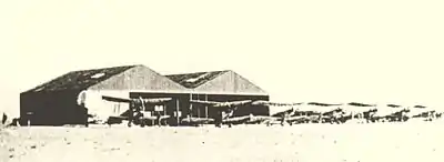 Ismailia Aerodrome with BE 2C two seater aircraft outside the hangars