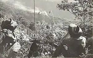 The Japanese troops holding the area around area were drawn from the 3rd Battalion, 66th Infantry Regiment—under the command of Lieutenant Colonel Fukuzo Kimura—the 3rd Battalion, 102nd Infantry Regiment and a detachment of 250 men from the 115th Infantry Regiment.[6] These forces were reinforced by elements of the 238th Infantry Regiment, which was sent to the area in mid-August as the Japanese sought to reinforce the Salamaua area by moving troops from other parts of New Guinea.[7]