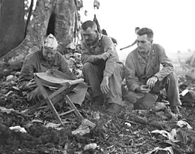 - ↑ Relieved of command and expelled from the island by Lt. Gen. Holland Smith for allowing his troops to fall behind the Marine Corps advance up the island.