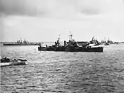 - Vice Admiral Richard L. Conolly in amphibious command ship Appalachian