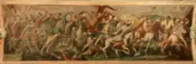 The battle lasted around one hour and ended in a total defeat for the Ottomans. Predojević (Nikola Predojević was the original name of Telli Hasan Pasha) did not survive the battle. Among the Ottoman commanders that were killed or had drowned in the Kupa were Sultanzade Mehmed Bey of the Sanjak of Herzegovina, Džafer Bey, Sanjak-bey of Pakrac Cernica and Hasan Pasha's brother, Arnaud Memi Bey of the Sanjak of Zvornik, and Ramazan Bey of the Sanjak of Pojega. Ibrahim Bey of the Sanjak of Lika managed to escape.[6] Total Ottoman losses were around 8,000 killed or drowned.[3] The Christian army captured 2,000 horses, 10 war flags, falconets, and artillery ammunition left by the Ottomans.[6][25] Christian army losses were light; a report from Andreas von Auersperg submitted to Archduke Ernest on 24 June 1593 mentions only 40–50 casualties among his men.[26][9]