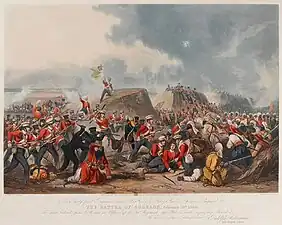 The Battle of Sobraon was fought on 10 February 1846, between the forces of the East India Company and the Sikh Khalsa Army, the army of the Sikh Empire of the Punjab.[3][4] The Sikhs were completely defeated, making this the decisive battle of the First Anglo-Sikh War.