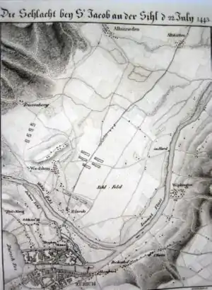 The Battle of St. Jakob an der Sihl was a battle of the Old Zürich War that occurred on July 22, 1443, resulting in a defeat for Zürich.