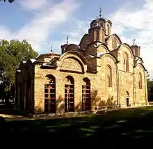 The Lazarević–Branković conflict became an opportunity for the Ottomans, who readied for war, to regain the power they had once wielded in the Balkans. A Serbian contingent returning home from Asia Minor was abruptly attacked and destroyed near Edirne on the orders of an Ottoman commander. It became clear to Lazarević that the rest of his army could not return using that route. Branković and the Ottomans sought to prevent Lazarević and his brother Vuk from returning home. Branković's forces were joined by an Ottoman contingent, ordered by Süleyman to take control of local roads and prevent the Lazarević brother's crossing, which was expected to take place in the Branković-controlled territory of Kosovo.[4] Still mistrustful of Branković's intentions, Süleyman sent one of his commanders to monitor Branković,[5] to ensure that he was truly loyal.[6] The Lazarević brothers and a detachment of about 260 men left Constantinople and embarked for the coast of Zeta by ship.[7] Before landing in Zeta, Lazarević had become aware of Branković's plans; the brothers prepared for battle. They met with their brother-in-law Đurađ II Balšić, who supported them militarily, and had their mother Milica raise an army in the Despotate.[4] Lazarević's army made its way inland in late October 1402, on detouring roads towards the Žiča monastery.[8] Branković's forces and the Ottoman contingent gathered near the Gračanica Monastery.[5]