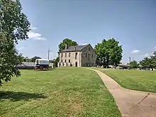 Late on December 6, Hindman learned that Herron had arrived to reinforce Blunt and would be in the area the next day. In response, Hindman changed his plan to strike Herron first at Prairie Grove and then attack Blunt.[17] Instead of acting aggressively against Herron as planned on December 7, Hindman took up a defensive position and awaited Herron's assault.[18] Hindman's men fought with Herron's until Blunt's men arrived and turned the tide for the Union. Hindman realized that his battered army did not have enough food or ammunition to fight again, and with the Union having been reinforced, fell back to Van Buren beginning the night after the battle.[19] Forage for horses was scarce in the Van Buren area,[20] and Hindman sent some of his cavalry, commanded by Brigadier General John S. Marmaduke, 100 mi (160 km) to the south to Lewisburg.[21] While at Van Buren, Hindman's force also suffered greatly from disease and desertion.[20] Van Buren was located on the north bank of the Arkansas River, with Fort Smith to the southwest on the south bank of the river.[22] The Arkansas River provided a key communication and transportation pathway in a state largely devoid of infrastructure and the Arkansas River Valley was an agricultural area important for feeding the Confederate army.[23] North of the river were the Boston Mountains.[24]