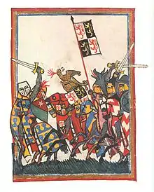 The Battle of Worringen was fought on 5 June 1288 near the town of Worringen (also spelled Woeringen), which is now the northernmost borough of Cologne. It was the decisive battle of the War of the Limburg Succession, fought for the possession of the Duchy of Limburg between on one side the Archbishop Siegfried II of Cologne and Count Henry VI of Luxembourg, and on the other side, Duke John I of Brabant.[1]