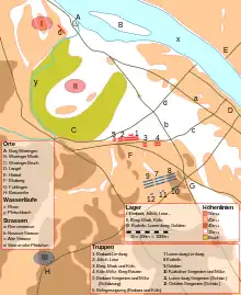 In the earliest phases of the battle, John of Brabant and Henry of Luxembourg met in a fierce fight, in which Henry and two of his brothers [2] were killed.[3] Soon after that, Siegfried entered the battle and in a bold advance was able to repel the Berg troops and the Cologne militia, however with too little support from his reserves.