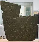 - ↑ "A little higher, a figure dressed in a long, embroidered robe leads a prisoner." in Bazin, Germain (1976). The History of World Sculpture. Chartwell Books. p. 100. ISBN 978-0-89009-089-3.