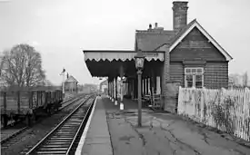 The line and station were opened on 1 June 1889 for goods and on 1 October 1889 for passenger services by the Great Eastern Railway.[1] The station had a single platform with a station building, a goods shed, a goods yard including cattle pens, and a 34-lever signal box. The freight service was withdrawn on 4 October 1965; the goods loop and signal box were closed on 7 December 1966. All the station buildings were demolished in 1968.[1] Electrification of the Wickford to Southminster line using 25 kV overhead line electrification (OLE) was completed on 12 May 1986.
