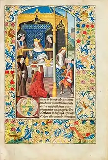 Baudonivia wrote it sometime between 599 and 614 at Chelles Abbey[3] using a previous vita by Venantius Fortunatus and her own recollections of a young Radegund. She regarded her work as similar to half of a diptych. Baudonivia created a portrait of a devout yet politically shrewd woman who used her worldly power to sustain the monastery.[4] Her work has been characterized as faithful to the picture painted by Venantius Fortunatus, but more significantly influenced by the ideology of Caesarius of Arles's Regula Virginum with the clear purpose of providing a model of sanctity for the nuns of her generation. The work is focused on the later stages of Radegund's life, when Radegund lived in a cell near Poitiers. The book also includes miracles attributed to Radegund's intercession.