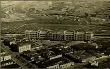 In 1904, the Companhia Estrada de Ferro Noroeste do Brasil was created. Composed of Belgian, French, and Brazilian financing, its objective was to link Bauru to the city of Cuiabá. Work on the railroad began in November 1904,[3] starting from the Bauru station of the Sorocabana Railroad, completed in July 1905.[4][5] The Bauru station of the Noroeste was erected in the vicinity of the Sorocabana station. Consisting of a wooden building, it was inaugurated together with the railroad on September 27, 1906.[6][7] Even so, the Noroeste operation still used the Sorocabana station as a boarding point for some time. The first Noroeste station became smaller in the face of growing passenger boarding. With the arrival of Companhia Paulista tracks in 1910, Bauru was consolidated as an important São Paulo railroad junction.[8]