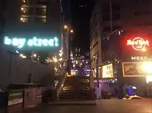 Bay Street was constructed on November 25, 2000 as part of a Lm 30 million investment for the Paceville area.[1] It incorporates the largest shopping complex on the island, which is open seven days a week from 10am-10pm. Bay Street lies adjacent to St. Julian's and Paceville, Malta's main nightlife area, and overlooks St. George's Bay.