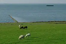 The Wadden Sea provides migrating birds with shelter and is home to various species of white fish, perch, pike, carp, asp, tench, catfish and zander.[3] The land around the bay is grazed by sheep and goats, the natural lawn mowers on the dykes.