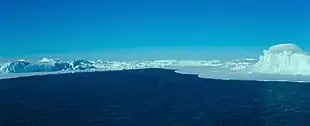 The Bay of Whales was a natural ice harbour, or iceport, indenting the front of the Ross Ice Shelf just north of Roosevelt Island, Antarctica. It holds the distinction of being the southernmost point of open ocean, not only within the Ross Sea but worldwide. While the Ross Sea stretches considerably further south – encompassing the Gould Coast, located around 320 kilometres (170 nautical miles) from the South Pole – the majority of this expanse is covered by the Ross Ice Shelf, rather than open sea.