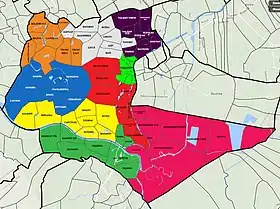 Bayambang is politically subdivided into 77 barangays,[13] 11 of which are urban barangays and 66 are rural barangays. Each barangay consists of puroks and some have sitios.