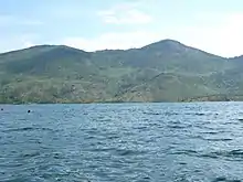 The largest lake is Sabyndykol (Kazakh: Сабындыкөл (Sabyndyköl), literally "soapy lake"), with the village of Bayanaul on its shore. The lake is named for its "soft water" and soap-like surface. According to legend, a girl named Bayan-Sulu dropped her soap in this lake while she was washing her hair.[3]