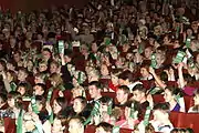 Since 1993 a yearly "Bazhov Festival" (Bazhovka) is held on the summer solstice, the Kupala Night, originally at the Lake Chebarkul.[31] The festival receives the support of the local administration of Chelyabinsk Oblast, the ministries of culture of Bashkortostan, Kazakhstan and Uzbekistan, local entrepreneurs, and over the years it received appreciation by many public figures, including Nikita Mikhalkov, and was attended amongst others by Lev Anninsky and Altynshash Jaganova.[32] Often, tickets for railway and airplane transport to the festival were provided free of charge, trains of the Moscow–Chelyabinsk route were decorated according to Bazhovite themes, and shields painted with mystical Bazhovite icons were hung throughout the cities.[33] Local troops of the Russian army also took part in the festivity.[33]