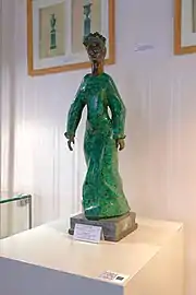 The Mistress of the Copper Mountain is the guardian of the real overworld hidden from ordinary perception, the "Ural Elysium",[22] represented as well as the interior of a mountain full of treasures, accessible only to those whom the goddess allows to enter[23] — unmarried young men who become her lovers.[24] Before being codified into Bazhov's tales, this belief was already present among the mining workers of the Ural Mountains.[23] According to V. N. Demin, the Mistress of the Copper Mountain is an instance of the worldwide cult of the mother goddess.[24] In his essay At the Old Mine, Bazhov described the Ural goddess as follows:[23]