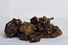 Bdellium /ˈdɛliəm/ (also bdellion or false myrrh[1]) is a semi-transparent oleo-gum resin extracted from Commiphora wightii plants of India, and from Commiphora africana trees growing in sub-saharan Africa. According to Pliny the best quality came from Bactria. Other named sources for the resin are India, Arabia, Media, and Babylon.[2]