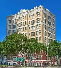 The Beaconsfield was designed as an apartment building by local architect Alonzo C. Pigg. Lamb-Field Company started construction in December 1910 and completed the building in 1911.[2] The eight-story building housed just sixteen apartments, each with "two screened balconies and six large rooms with fireplaces."[3] Building amenities included servants quarters, elevators, back stairways, and parking.[3]