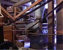 The mill is a wooden building with a stone foundation and a metal roof.[5] It remained in continuous operation for well over a century, slowing from full capacity only in the late 1970s when the miller decided to go into partial retirement. Since then, the mill has continued in use: partially as a milling museum, and partially as a gristmill.[2] In 1975, it was listed on the National Register of Historic Places,[1] qualifying because of its architecture and because of its significance in Ohio's history.[5] Today, the mill is operated by the Friends of Bear's Mill, a non-profit organization dedicated to maintaining and operating the mill as a historic landmark.[6]