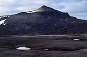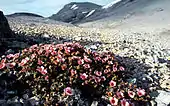 Although there are currently no industrial activities on Bjørnøya or in its immediate vicinity, pollution by toxic and radioactive substances remains a threat to the island's virtually untouched nature. Exploration in the Barents sea and the recent development of the Snøhvit gas field off the northern coast of Norway shows that the ecologically sensitive polar and subpolar sea areas of the Norwegian and Barents Sea have come into the focus of the petrol and gas industry.[22] The environmental organisation Bellona has criticised[23] the Norwegian government for licensing these activities without sufficient studies of their ecological impact. Organic toxins, specifically PCBs, have been found in high concentrations in biological samples from Bear Island, especially in Arctic char of the freshwater lake Ellasjøen.[24] The Soviet nuclear submarine Komsomolets sank on 7 April 1989, some 135 nautical miles (250 km) southwest of Bear Island.[25] Leakage of radioactive material from the reactor and nuclear warheads currently poses a problem, and severe pollution of the surrounding waters remains possible.[26]