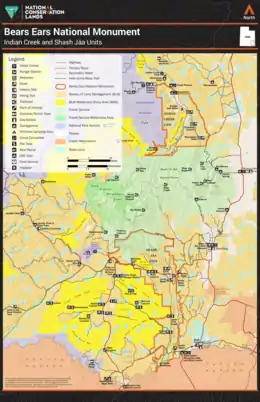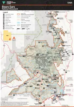 - ↑ "BLM Utah Bears Ears National Monument Map" (PDF). Bureau of Land Management. Retrieved May 23, 2017.