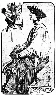 She was graduated with high honors from the Hopkins Art Institute in San Francisco, California, with a specialty of the art of the American Indian. She went among Indian tribes to study their decorations of "pottery, leather things, cloth and basketry."[4]