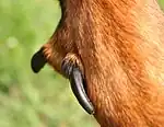 Although most breeds may or may not have dewclaws (many owners of other breeds remove dewclaws, especially if the dog is used for field and hunting), an important feature of the Beauceron is the double dewclaw. In order to be shown, a Beauceron must have double dewclaws that form well-separated "thumbs" with nails on each rear leg; anything less will result in disqualification from dog shows. The Beauceron's double dew claws are connected by bone (unlike most breeds) and some dogs are even able to flex each one individually.[1][2][3] The Beauceron has no breed-specific health problems.[4]