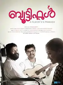 Beautiful is a 2011 Indian Malayalam musical drama film written by Anoop Menon and directed by V. K. Prakash. The film stars Jayasurya, Anoop Menon and Meghana Raj in the lead roles. The cinematography was by Jomon T. John and the music was composed by Ratheesh Vegha. It tells the story about the intense bonding of two friends, one quadriplegic and the other a musician. The film released on 2 December 2011 to predominantly positive reviews and was a commercial success.[1]