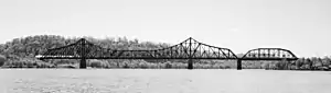 The Beaver Bridge is a rail bridge spanning the Ohio River between Monaca and Beaver, Pennsylvania. It consists of two spans: a southern cantilever through truss of 769 feet (234 m) with 320-foot (98 m) anchor arms; and a northern camelback through truss of 370 feet (110 m). The bridge currently carries two tracks of CSX Transportation.