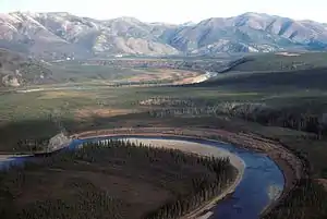 Beaver Creek (Upper Tanana: Taatthee Niign) is a 180-mile (290 km) tributary of the Yukon River in the U.S. state of Alaska.[2] The creek begins at the confluence of Champion and Bear creeks in the White Mountains National Recreation Area, about 50 miles (80 km) north of Fairbanks.[4][5] From there it flows west around the southern end of the White Mountains, then northeast into the Yukon Flats National Wildlife Refuge, then west into the Yukon River downstream of Beaver.[4][6]