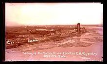 By 1900, McKenzie, Mann & Co. had construction work on the steel railway bridge well underway. Much of the material for the bridge was brought during the winter and piled on the ice, after the spring breakup, barges were used, one of the barges, carrying railway ties, sunk at the intersection of the river and Miller's Creek, it still lies at the bottom of the river.