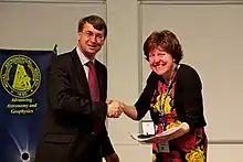 ![]() Becky Parker (right) receiving the Patrick Moore Medal in 2012 | |