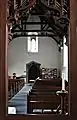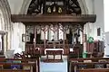 The priory and many of its records were destroyed in 1283 or 1284 by a fire. As of the early 16th century it was Sir John Wynn (ancestor of the Barons Newborough who owned the priory in addition to Bardsey Island.[2] In the 16th century, as part of the dissolution of the monasteries, the priory was closed in October 1535[3] and became a simple parish church. Remnants of the church's medieval past include transept arches and some of the stonework around the lancet windows. The Victorian era brought further modifications including the demolition of the north aisle and some new stained glass. The existing glass is dated only to the 19th and 20th centuries and includes work by Dunstan Powell (1920) and Trena Cox (1968).[4][5][6][7][8][9][10][11][12]