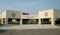 Bedford North Lawrence High School is a comprehensive, four-year public high school located in the eastern part of Bedford, Indiana. It is accredited by the Indiana Department of Education and North Central Association of Colleges and Schools. Established in 1974, the school consolidated seven area high schools: Bedford, Tunnelton, Shawswick, Needmore, Fayetteville, Oolitic, and Heltonville. Bedford North Lawrence is fed from Bedford and Oolitic Middle Schools, as well as the private St. Vincent de Paul School.