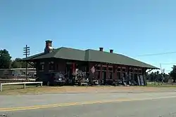 The Beebe Railroad Station is a historic railroad station building located on Center Street in Beebe, Arkansas. It is a single-story brick building, with a broad hip roof with overhanging eaves supported by large brackets. It was built in 1910 by the Missouri-Pacific Railroad, and is one of the best-preserved of this type of station in the state. It is also a reminder of the importance of the railroad in Beebe's original development, which was entirely dependent on the railroad.[2]