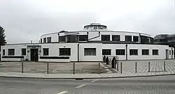 The building rises from one storey in the exterior ring to three in the centre. This central section originally contained a control tower, weather station and some passenger facilities; the main passenger circulating area surrounded it on the storey below. Baggage handling also took place on this floor. A restaurant and offices were on the ground floor in the outermost ring. The ground and first floors have windows of various sizes at regular intervals, while the former control tower was glazed all around.[2] Changes have been made to the internal layout since the conversion of the building to offices.